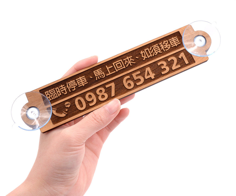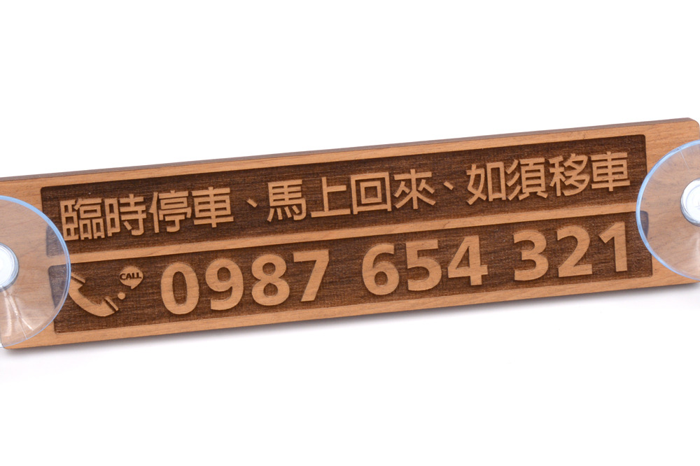 讓你停車時有留下自己的電話號碼,當一個友善用路的主人,臨停不造成他人的困擾,透過台灣檜木停車牌聯繫您而免於被拖吊及開單風險。檜木製的汽車暫時停車電話號碼牌。